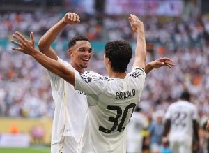 体育资讯2月15日讯 西甲第24轮,皇家马德里主场迎战皇家社会,比赛第6分钟,阿诺德精妙传中助攻,贡萨洛破门,皇马1-0领先。