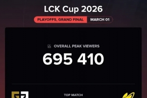 体育资讯3月2日讯 据Esports Charts数据统计,刚刚结束的LCK杯冠军赛GEN对阵BFX在海外仅有69万收视率。