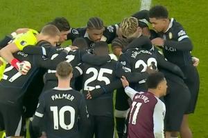 比赛下半场,落后的主队维拉正急于开球时,切尔西众将集体来到中圈,将球团团围住,随后一同加油喊话,维拉球员对此很是不满,不断向主裁判投诉这一行为。国外解说员也表示,这一举动“有些荒唐”。