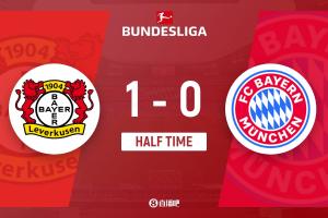 半场结束,拜仁暂0-1勒沃库森。