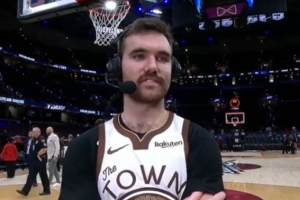 体育资讯12月7日讯 NBA常规赛,勇士在客场以99-94击败骑士,斯潘塞在场边接受了媒体采访。
