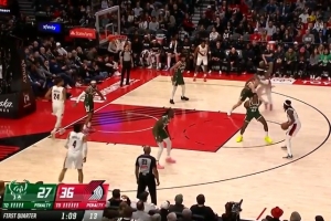 下一篇: 参加明年扣篮大赛吧!贝利快下接球迎着防守 跨步大翻身劈扣