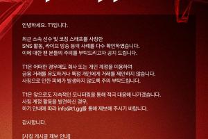 • T1 在任何情况下,皆不会透过公司官方帐号或个人帐号,向特定个人鼓励金钱交易或提议任何形式的转帐/交易。