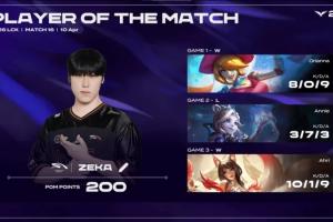 体育资讯4月10日讯 在刚刚结束的LCK常规赛的比赛中,Zeka三局合砍21/8/21的战绩,拿下HLE对阵BFX系列赛MVP。