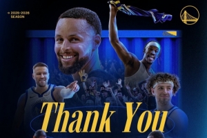 勇士官方今日更推向球迷致谢写道:#勇士国度,你们真的是全世界最好的球迷,感谢你们一整个赛季以来的支持。