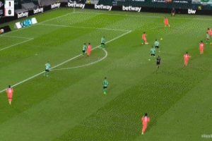 两分钟后巴德吉右路传中,费兰凌空侧钩破门完成双响,巴萨反超比分,2-1贝蒂斯!