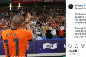 体育资讯12月28日讯 今天,韦林顿·席尔瓦更新社媒,向青岛海牛俱乐部和球迷告别。