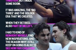 “当费德勒和纳达尔退役时我觉得我也失去了一部分的自我。所以我不得不重塑自己,寻找新的驱动力。而我之所以坚持下去,也是想看看自己能达到什么样的高度。”