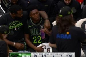此役,鹈鹕最多时落后25分,但是第三节在新秀德里克·奎因的带领下反超了比分。