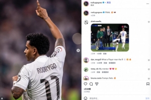 罗德里戈最近6场比赛贡献3球3助攻,他也在赛后通过社媒晒出自己进球后的庆祝照,并配文:“决赛!”