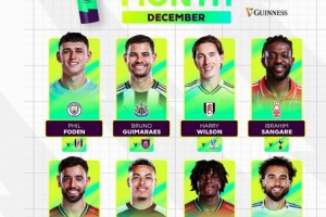 体育资讯1月9日讯 英超官方公布了12月最佳进球获选名单,福登、B费、多尔古的进球在列。