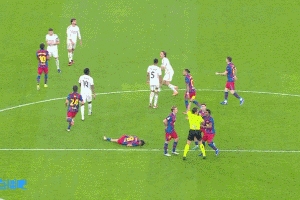 体育资讯01月12日讯 西超杯决赛巴萨vs皇马,第56分钟,拉菲尼亚冲上去为队友出头,被巴尔韦德推到地上滚了一圈,巴尔韦德吃到黄牌!