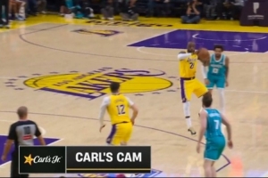 GIF-詹姆斯抢断后行进中大横传找东契奇,不停球助斯玛特三分