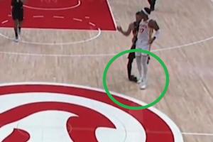 慢镜头显示,布克是在跑动时,踩到了奥孔武的脚(两人都没有注意到对方),导致自己严重崴脚!