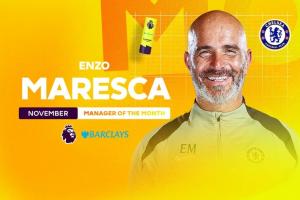 体育资讯12月12日讯 英超官方消息,切尔西主帅马雷斯卡当选11月最佳主帅,击败阿尔特塔、埃梅里、瓜迪奥拉等教练,切尔西在11月份的联赛取得3胜1平的战绩。