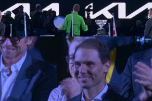 体育资讯02月01日讯 2026年澳网男单决赛结束,阿尔卡拉斯3-1战胜德约科维奇夺冠。德约在赛后致辞时,打趣了今天前来观赛的纳达尔。
