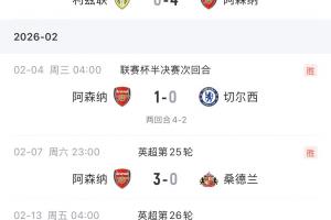 体育资讯02月08日讯 阿森纳3-0完胜桑德兰,各赛事四连胜。
