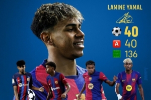 下一篇: 40球40助!18岁亚马尔为巴萨出战136场比赛参与80球