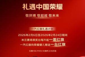 一汽红旗在宣传海报中写道:米兰赛场领奖台每升起一面红旗,一汽红旗向荣耀健儿赠送一台红旗。