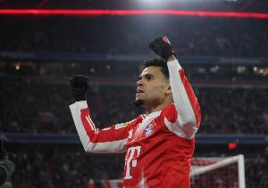 体育资讯2月9日讯 在本轮德甲联赛的一场比赛中,拜仁慕尼黑主场5-1横扫霍芬海姆,比赛中拜仁边锋路易斯·迪亚斯上演帽子戏法。