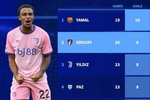 下一篇: 五大联赛U21进球榜:亚马尔10球居首 克鲁皮、伊尔迪兹、帕斯各8球