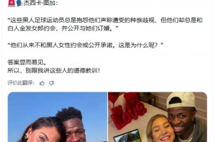 上一篇: 维尼修斯前女友:这些黑人球员总是抱怨种族歧视,但他们却总是和白人金发女郎约会